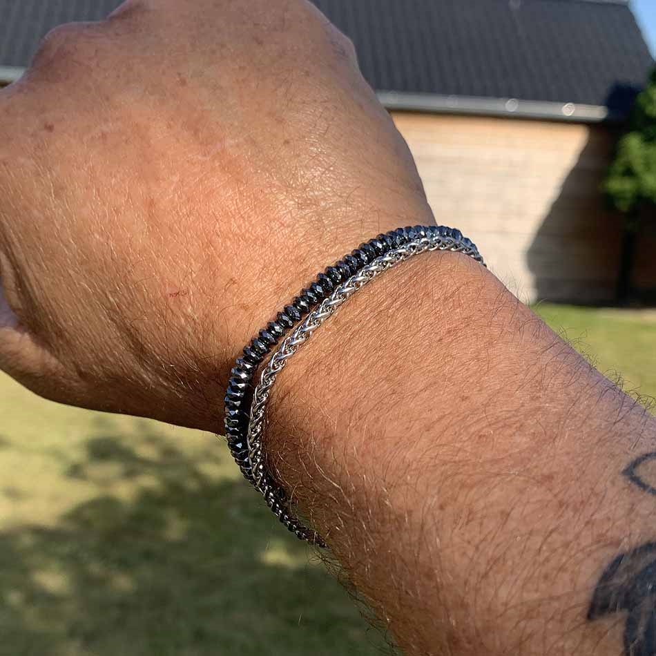 Eines aus Edelstahl und eines mit funkelnden Hamatit-Perlen.