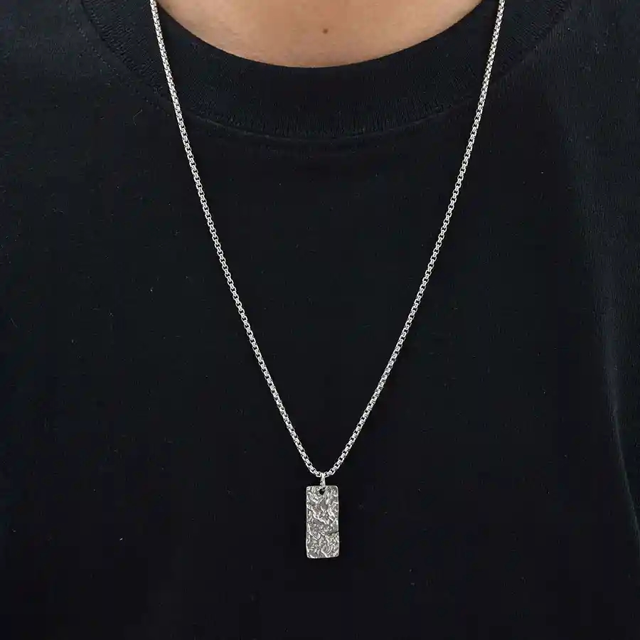 Der gehämmerte Anhänger verleiht eine maskuline und authentische Oberfläche, während die 60 cm lange Kette den Look mit nordischer Coolness abrundet.