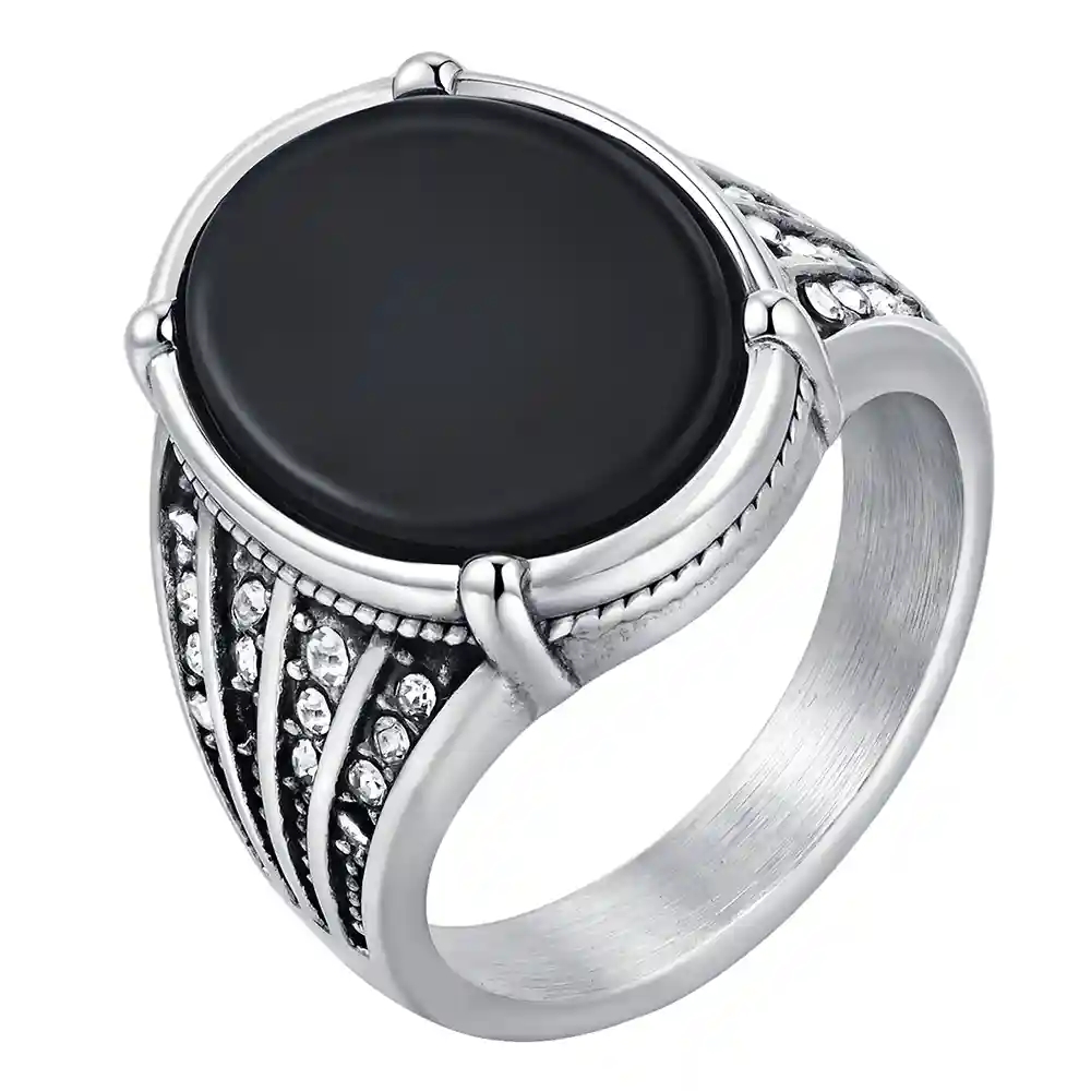 Black Agate Power Ring – Edelstahl Herrenring
