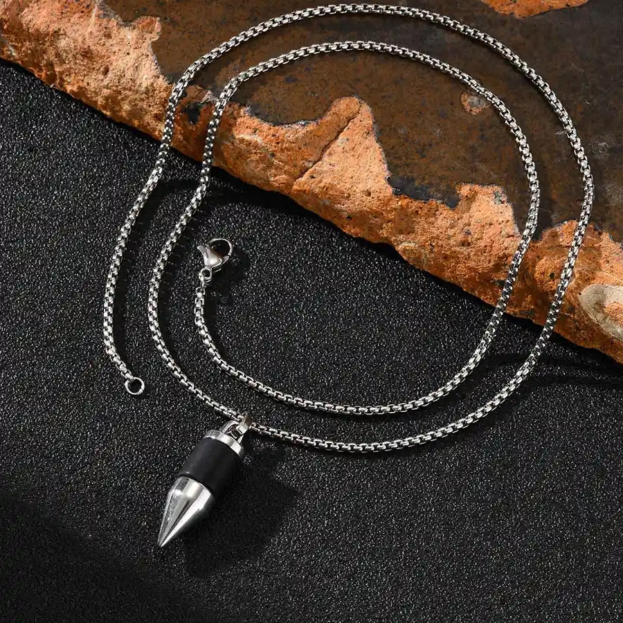 BulletCore Steel Necklace ist für den Mann gemacht, der sich traut, aufzufallen. Der Anhänger, inspiriert von einer Patrone, ist aus Edelstahl mit einem schwarzen Mittelteil gefertigt, um einen rauen und maskulinen Look zu erzielen.