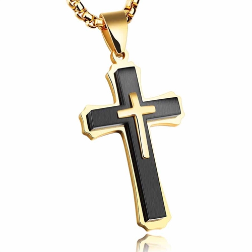 Kreuz aus vergoldetem Edelstahl und schwarzem Achat.