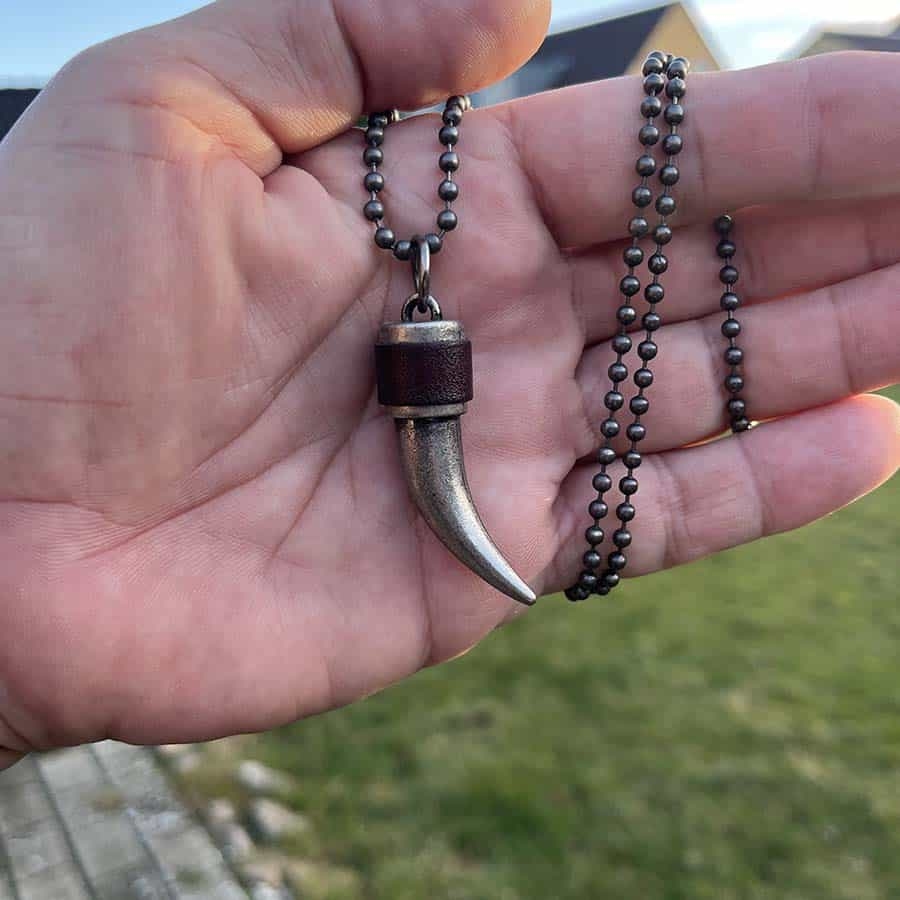 Coole Halskette aus braunem Leder und Altmetall. Die 65 cm lange Kette aus Rotguss ist im Lieferumfang enthalten und lässt sich leicht kürzen. Ein super schöner und stylischer Herrenschmuck, den alle Männer lieben werden. Der Schmuck ist 4,5 cm lang.