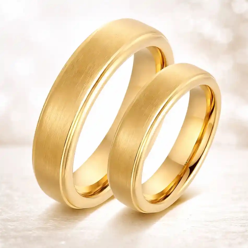 Fantastisch schöner vergoldeter IP Gold Wolframring mit glänzenden Kanten oben, der ein fantastisches, elegantes Design bietet.