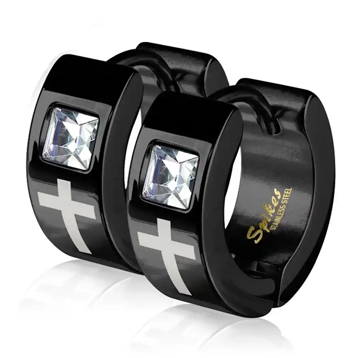 Schwarz beschichteter IP-plattierter Ohrring mit Laserkreuz und CZ-Stein.
