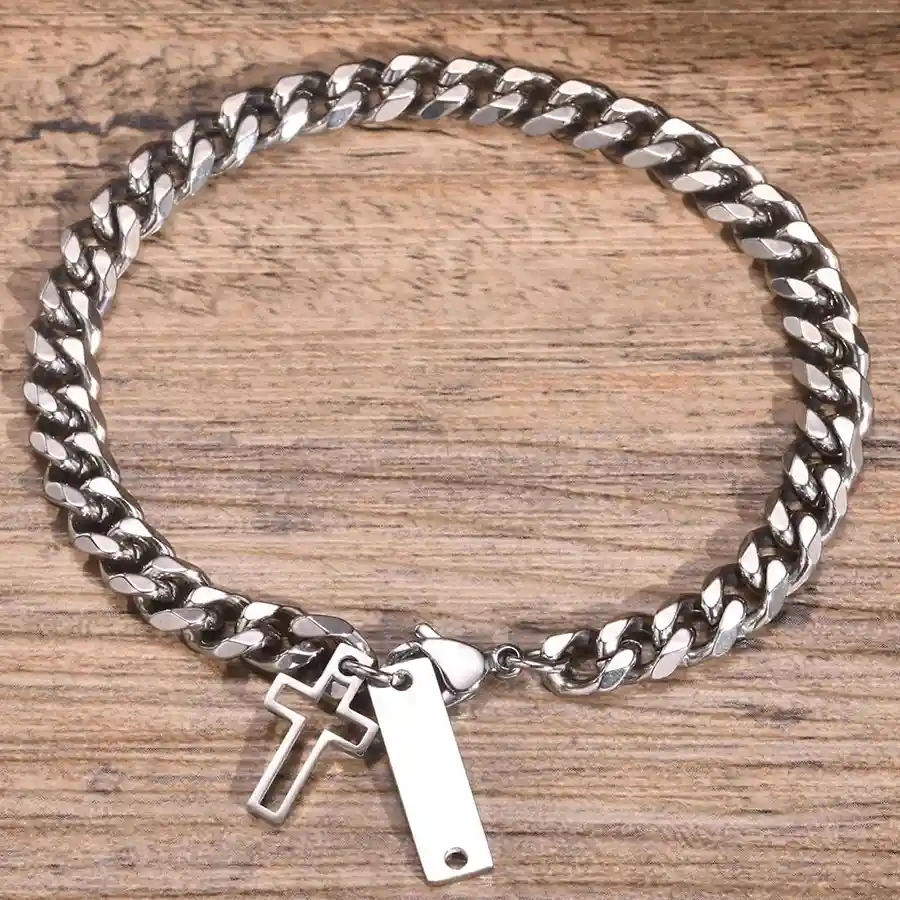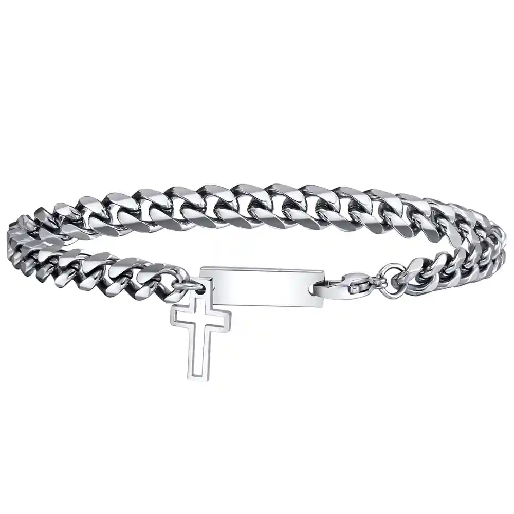 Kraftvolles und stilvolles Herrenarmband aus Edelstahl mit einem klassischen Kreuzanhänger.