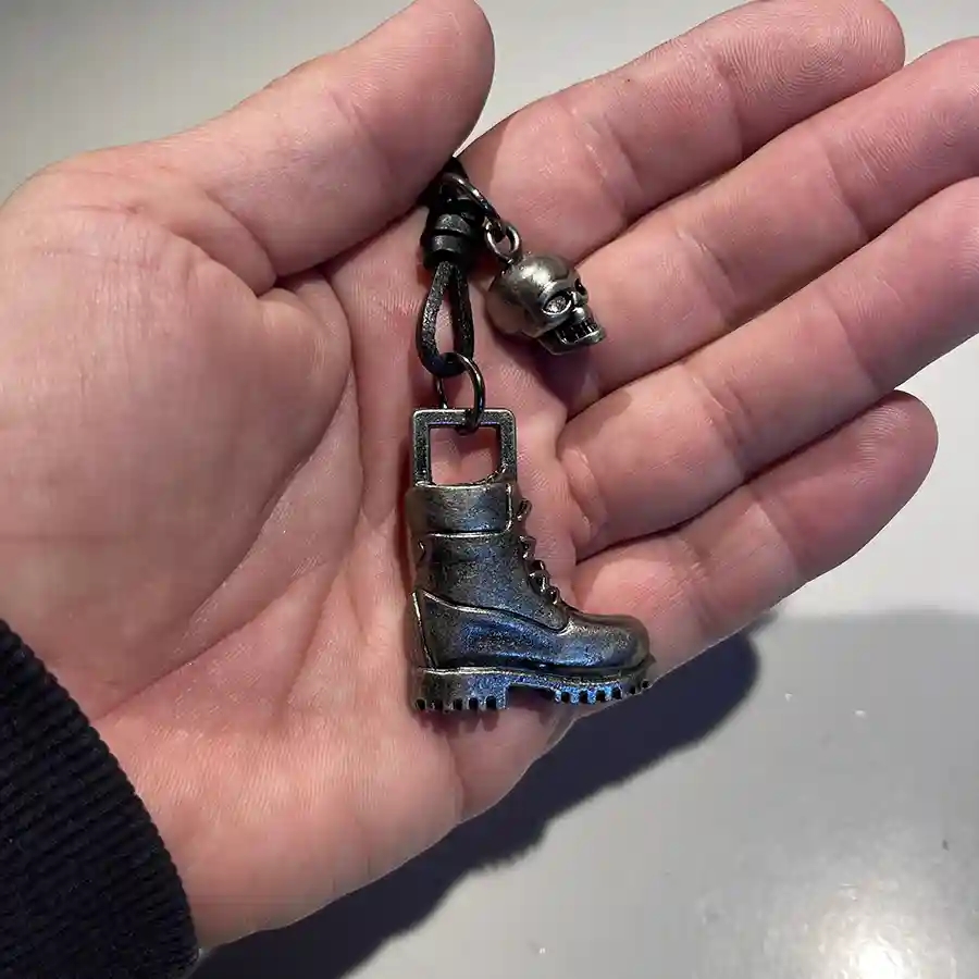Super stylisches Ledercollier für den trendigen Mann. Design: Bootz in Altmetallic. 74 cm weiche Lederkordel, quadratisch geschnitten. (Variabel) Größe des Anhängers: 4 x 3,5 cm.