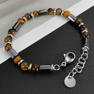 Herrenarmband mit Hametit- und Tigerauge-Perlen 6mm