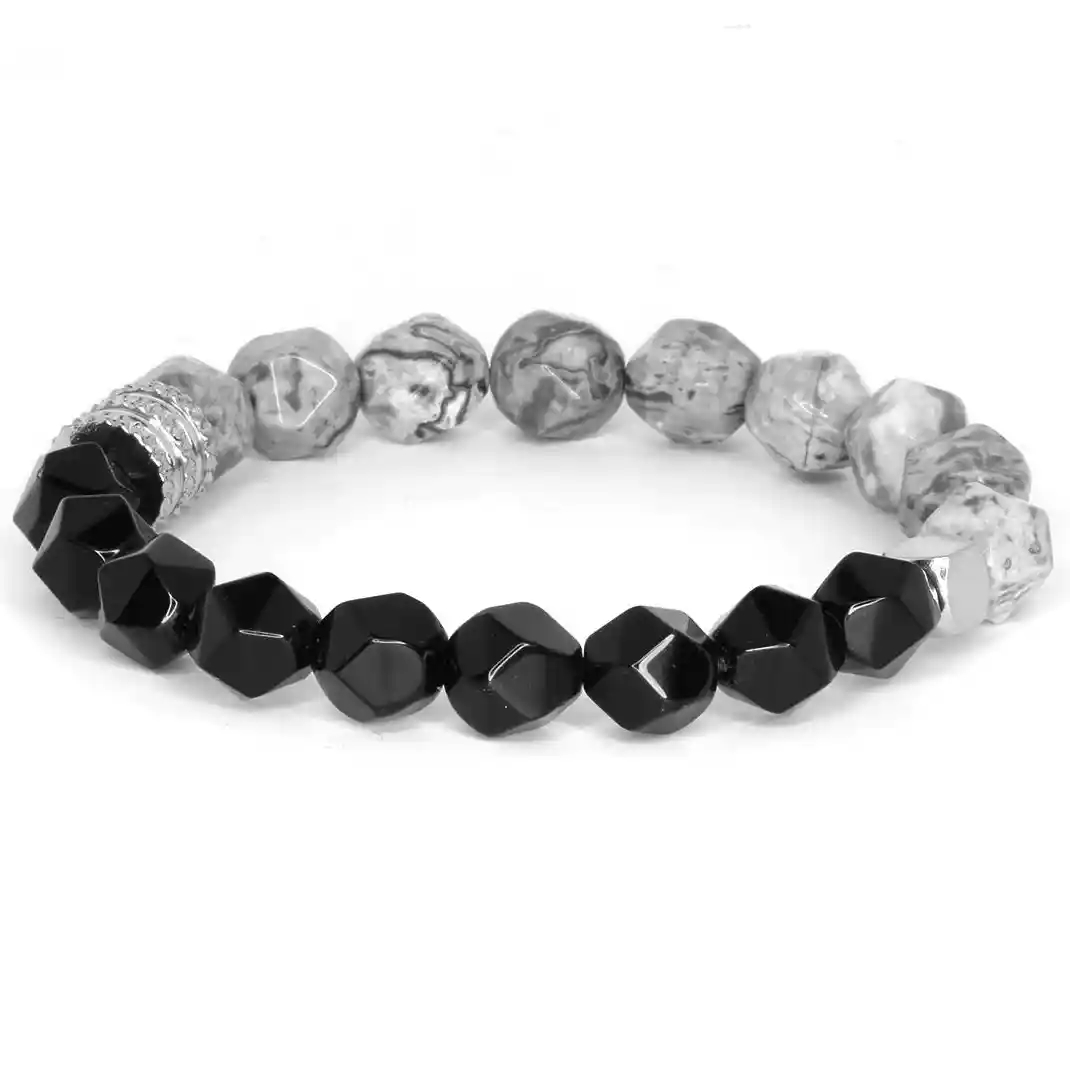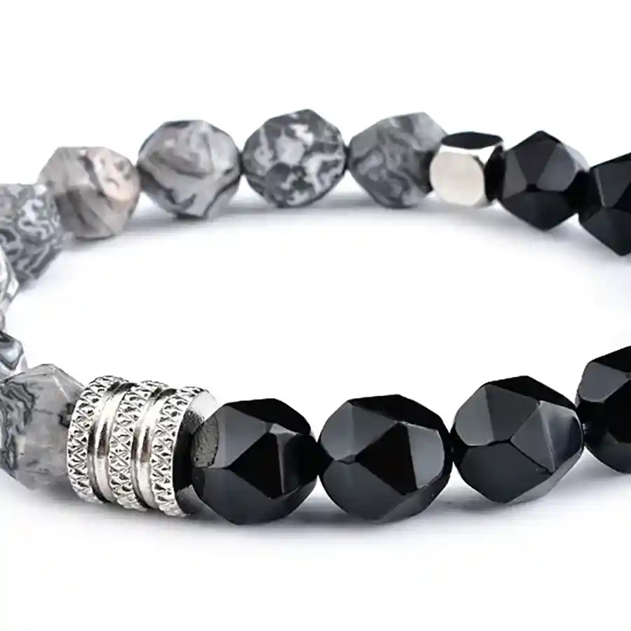 Nordic Balance Perlenarmband für Männer mit 10 mm facettierten Achat- und Lapisperlen.