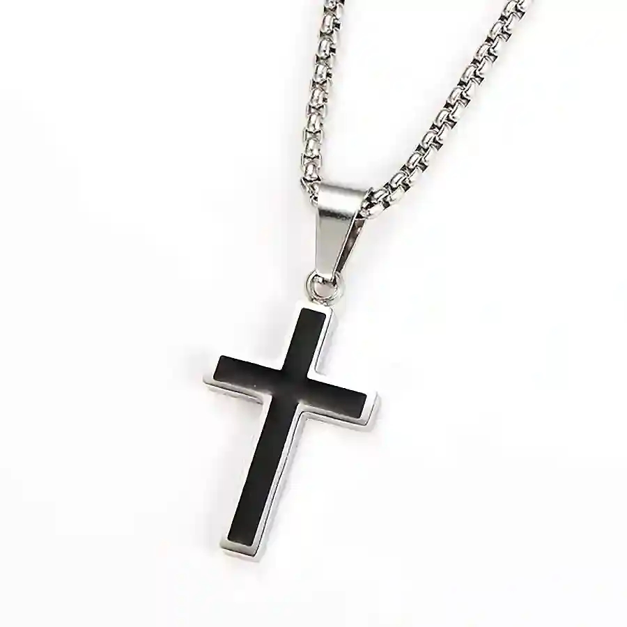 „Nordic Faith“ ist ein maskulines und zeitloses Kreuzschmuckstück aus hochglanzpoliertem Edelstahl mit elegantem schwarzem Einsatz.