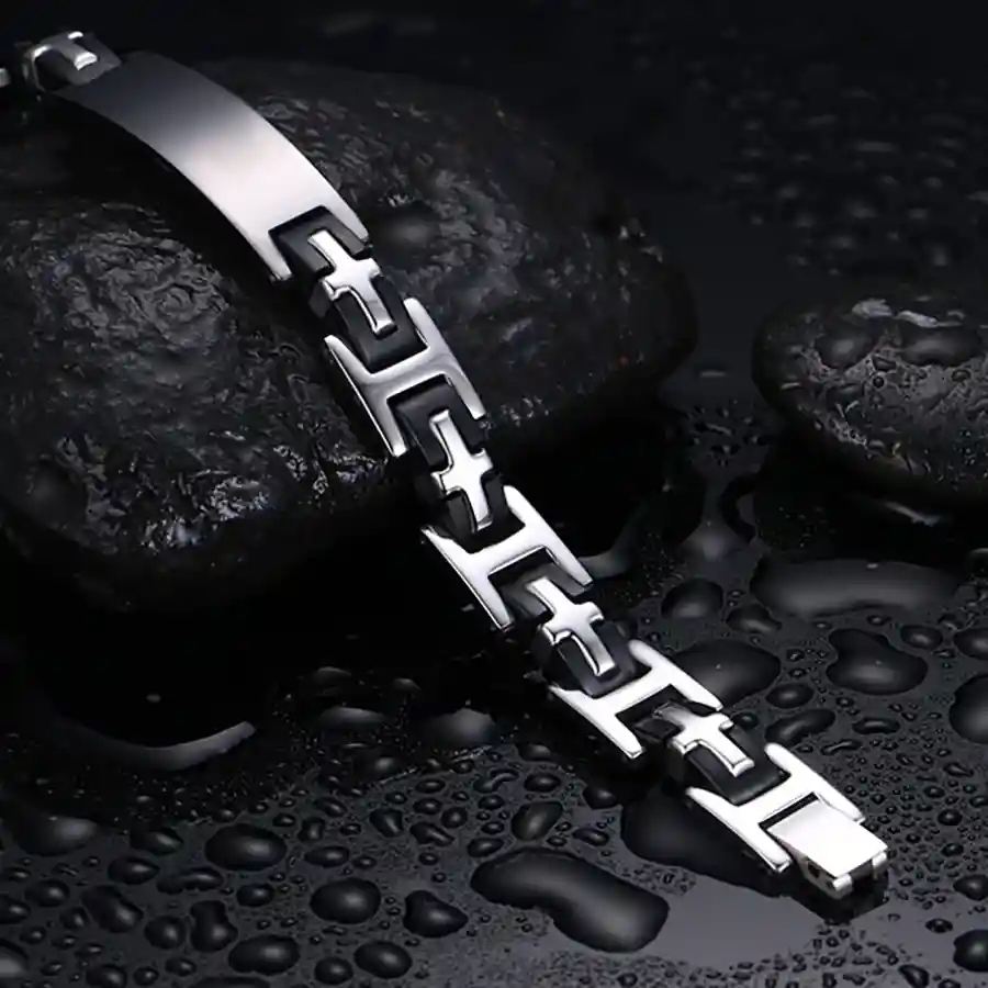 Ein stilvolles und maskulines Armband für Männer, hergestellt aus Edelstahl und schwarzem Silikon.