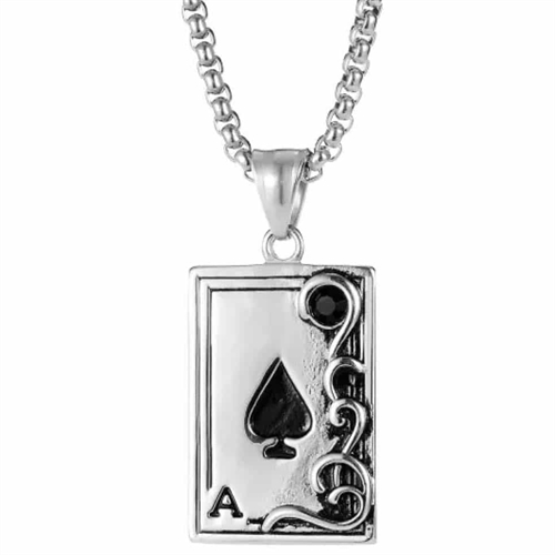 Edelstahl-Halskette der alten Schule mit Pik-As-Motiv.