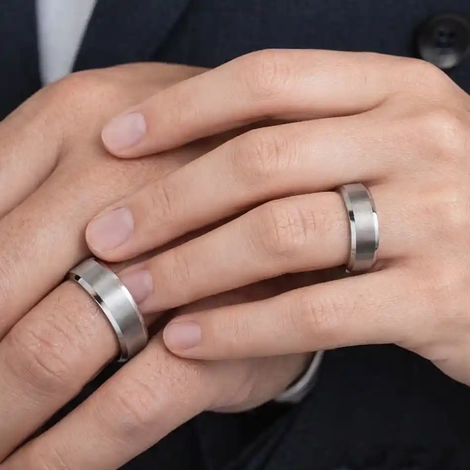 Qualitätsring aus chirurgischem Edelstahl mit mattierter Oberfläche und glänzend hochpolierten Kanten.
