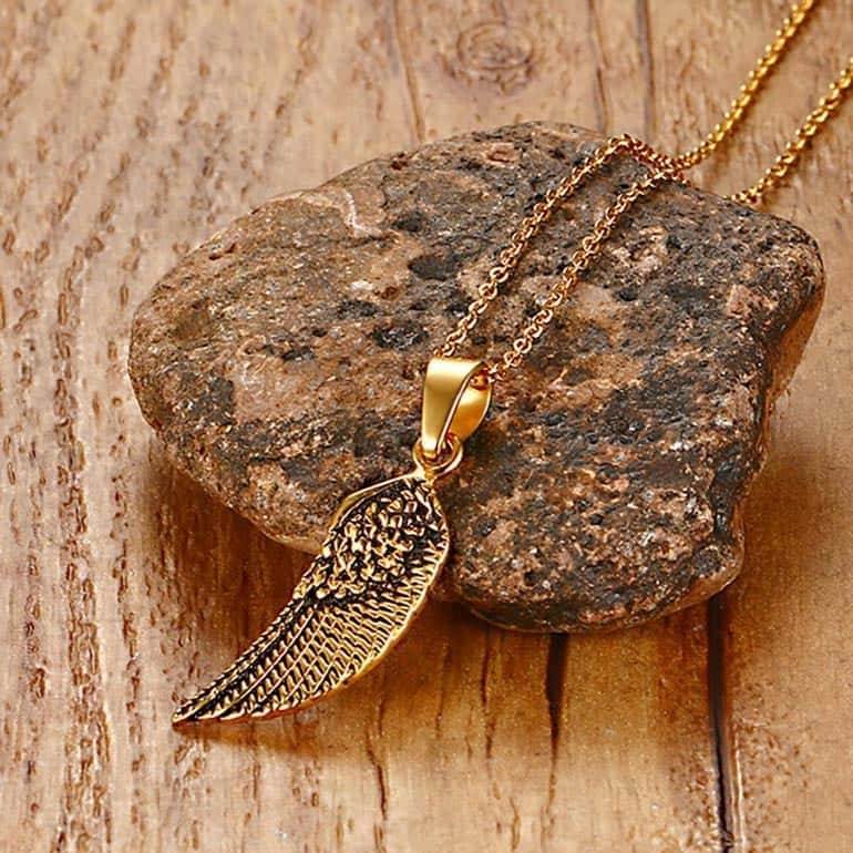 Schöner vergoldeter Flügel aus Edelstahl mit 50 cm langer Kette.